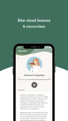 Atbalsts ar *Digestible* neaprobežojas tikai ar izpratni un vingrinājumiem. Programma sniedz reāllaika palīdzību un norādījumus tieši uzliesmojumu laikā, pielāgojoties Jūsu aktuālajām sajūtām, lai Jūs nekad nejutītos viens. Tā ir Jūsu uzticamais ceļvedis, kas palīdzēs spert pirmos soļus pretim ilgstošai un patiesai atvieglojuma sajūtai, atgūstot kontroli pār savu veselību un dzīves kvalitāti, un beidzot atbrīvojoties no IBS simptomu ieslodzījuma.