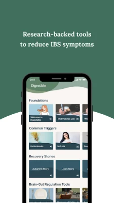 Ar *Digestible* Jūs gūsiet dziļu izpratni par savu stāvokli, atklājot, kā Jūsu smadzenes ietekmē gremošanas sistēmu un veicina simptomu parādīšanos. Programma sniegs Jums rīkus, lai precīzi noteiktu individuālos izraisītājus – faktorus, kas uztur Jūsu simptomu ciklu. Balstoties uz šīm atziņām, *Digestible* nodrošina personalizētus vingrinājumus un stratēģijas, kas palīdz nomierināt zarnu traktu un ievērojami samazināt nepatīkamās sajūtas. Tā ir individualizēta pieeja, kas pielāgojas tieši Jūsu vajadzībām, piedāvājot mērķtiecīgu un ilgstošu atvieglojumu.