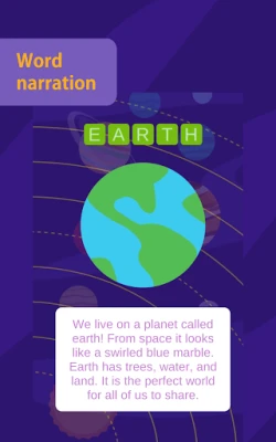Atklājiet Saules sistēmas brīnumus ar šo jautro, izglītojošo lietotni bērniem. Bērni viegli apgūs planētu nosaukumus un pareizrakstību. Lietotne efektīvi māca angļu valodu, alfabētu un skaņas, kā arī papildu valodas: franču, vācu, itāļu, japāņu un spāņu.
